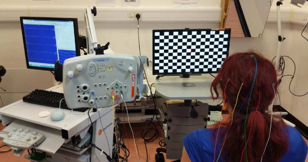 During the VEP test, you will sit comfortably and focus on a screen displaying patterns or flashing lights. Small electrodes are placed on your scalp to record brain activity. The test is safe, painless, and usually takes 30–45 minutes. Results provide valuable insight into the health of your optic nerve and brain’s visual processing.
